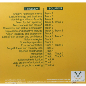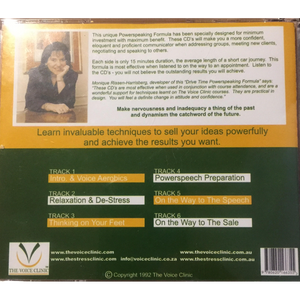 Dynamic and fun cd to play while on the way to my presentations and meetings. it gets my voice warmed up, and my brain thinking quickly. this is a must for everyone who needs to speak well at work and at play. thanks Voice Clinic for this essential cd!